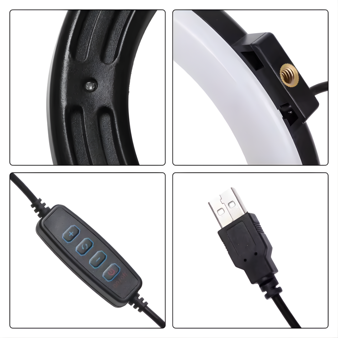 A diferencia de luces improvisadas, ARO DE LUZ PORTÁTIL brinda una iluminación equilibrada y práctica que se adapta a tu rutina diaria. Ideal para creadores de contenido, clases virtuales, maquillaje, selfies y transmisiones en vivo, gracias a su diseño compacto y fácil de usar.
