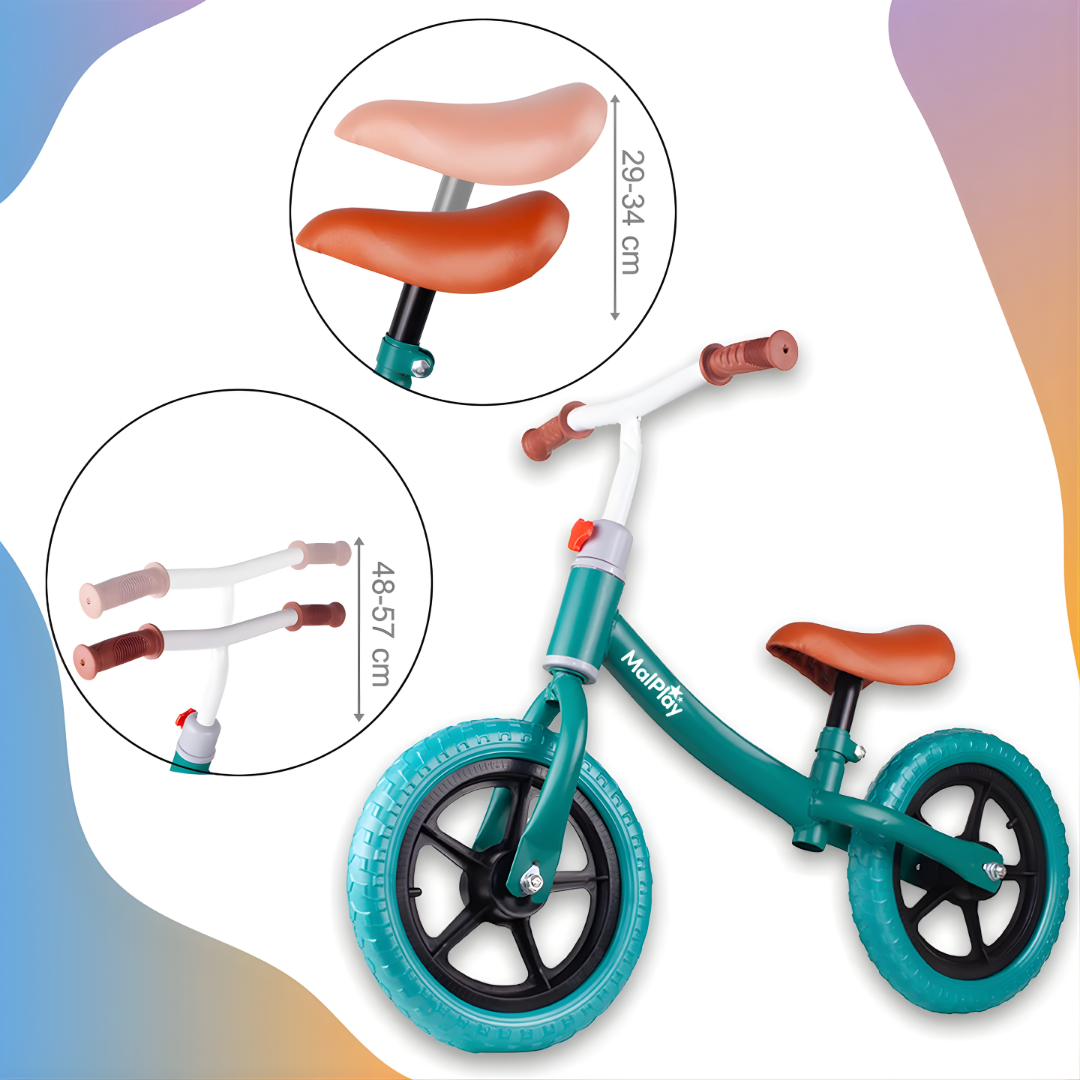 A diferencia de bicicletas tradicionales, BICICLETA DE EQUILIBRIO PARA NIÑOS permite que el niño impulse con sus pies, controle la dirección y mantenga el balance por sí mismo, facilitando una transición mucho más fácil y segura a una bicicleta con pedales en el futuro. Ideal para el juego activo y el desarrollo motor.