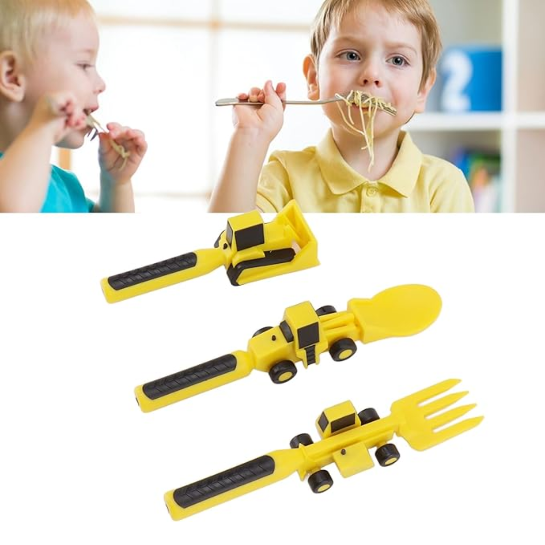 Los CUBIERTOS CON DISEÑOS DE CAMIONES están pensados para que los niños disfruten cada bocado con emoción. Su diseño en forma de vehículos de construcción hace que comer sea una aventura llena de imaginación, ayudando a los más pequeños a desarrollar su independencia de una forma entretenida y segura. Fabricados con materiales resistentes, ligeros y libres de BPA, estos cubiertos son ideales para uso diario. Sus mangos ergonómicos permiten un agarre cómodo, perfecto para las pequeñas manos que están aprendiendo a manejar utensilios.