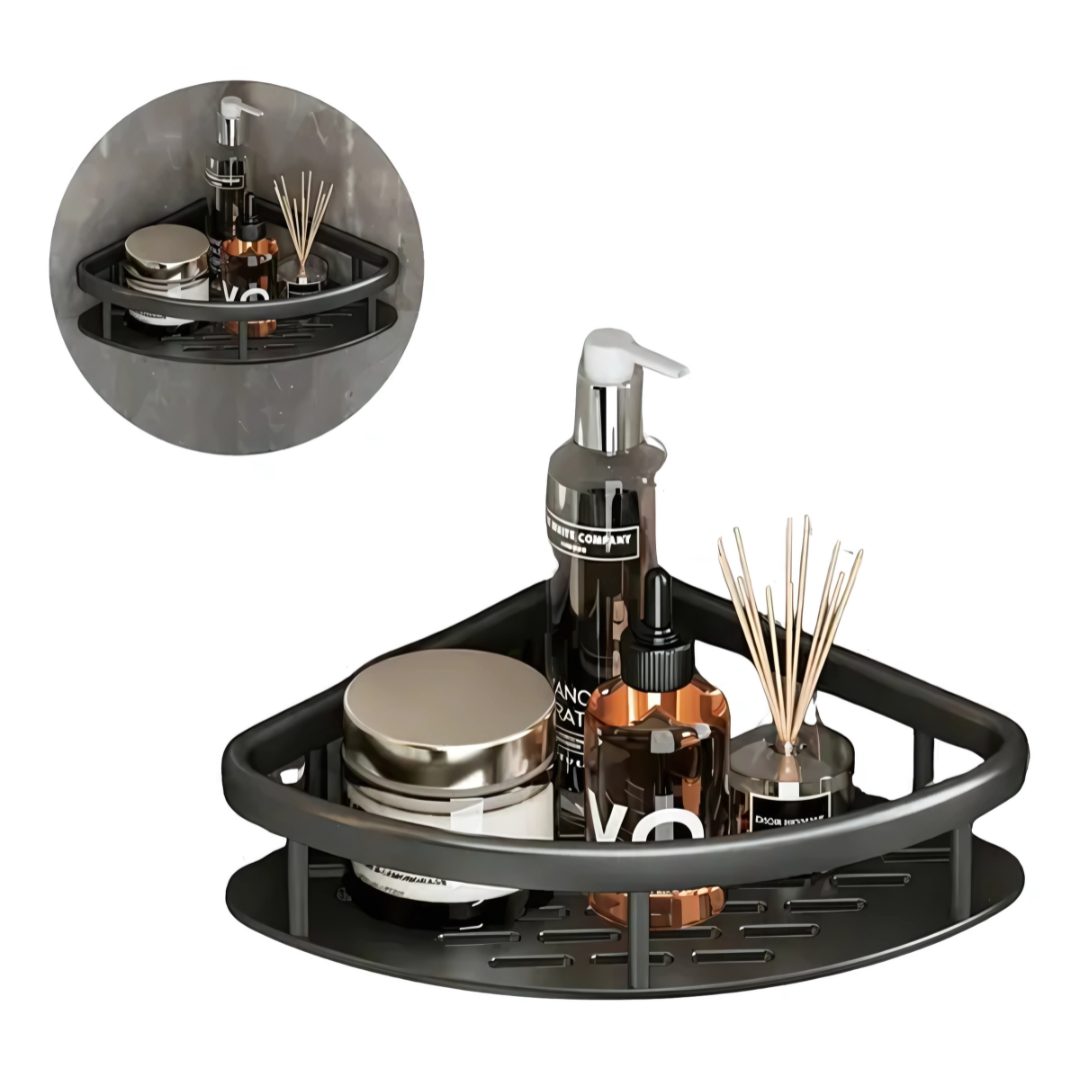 ¿Tienes rincones desaprovechados en el baño o la cocina? La Estantería Triangular transforma cualquier esquina en un espacio útil y organizado. Su diseño de ángulo recto se adapta perfectamente a esquinas de paredes, brindándote una solución práctica para colocar jabones, frascos, condimentos o lo que necesites tener a la mano.